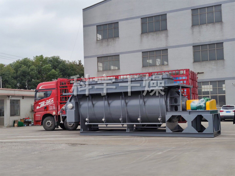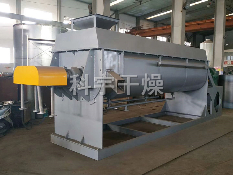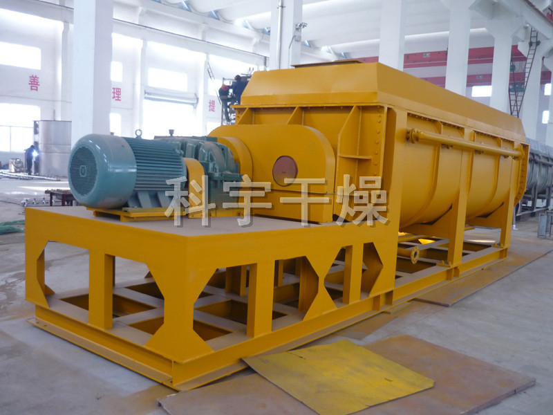 空心軸上密集排列著楔型中空漿葉,熱介質(zhì)經(jīng)空心軸流經(jīng)漿葉。單位有效容積內(nèi)傳熱面積很大,熱介質(zhì)溫度從-40℃到320℃,可以是水蒸汽,也可以是液體型:如熱水、導(dǎo)熱油等。間接傳導(dǎo)加熱,沒有攜帶空氣帶走熱量,熱量均用來加熱物料。熱量損失僅為通過器體保溫層向環(huán)境的散熱。楔型漿葉傳熱面具有自清潔功能。物料顆粒與楔型面的相對(duì)運(yùn)動(dòng)產(chǎn)生洗刷作用,能夠洗刷掉楔型面上附著物料,使運(yùn)轉(zhuǎn)中一直保持著清潔的傳熱面。漿葉干燥機(jī)的殼體為Ω型,殼體內(nèi)一般安排二到四根空心攪拌軸。殼體有密封端蓋與上蓋,防止物料粉塵外泄而充分發(fā)揮作用。